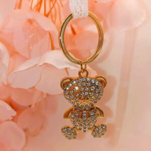 Dit goudkleurige hangertje met schattig beertje en strassteentjes is een echte eyecatcher.